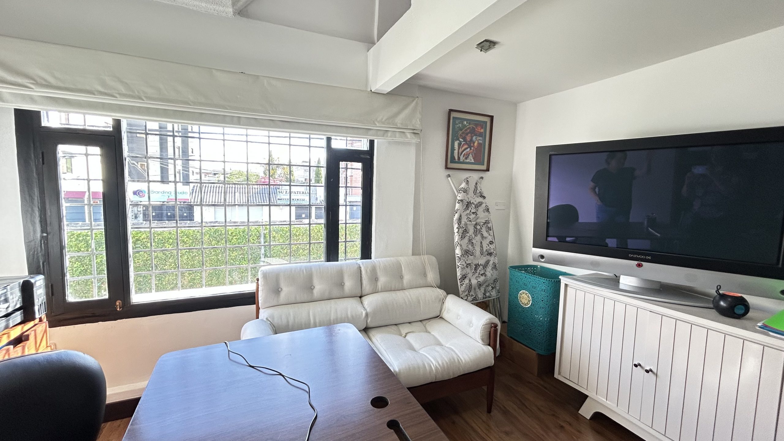 una sala y baño completo